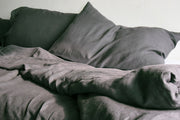 Our SLATE GRAY pure European linen bed-bundle offers you lovely bed linen in your favourite color, bundled at a DISCOUNTED PRICE! This bed-bundle contains one flat sheet, one duvet cover, and two pillow cases. All pieces in the bundle are stonewashed for comfort, a feathery soft texture, and of course, for the legendary lived-in look and feel.
