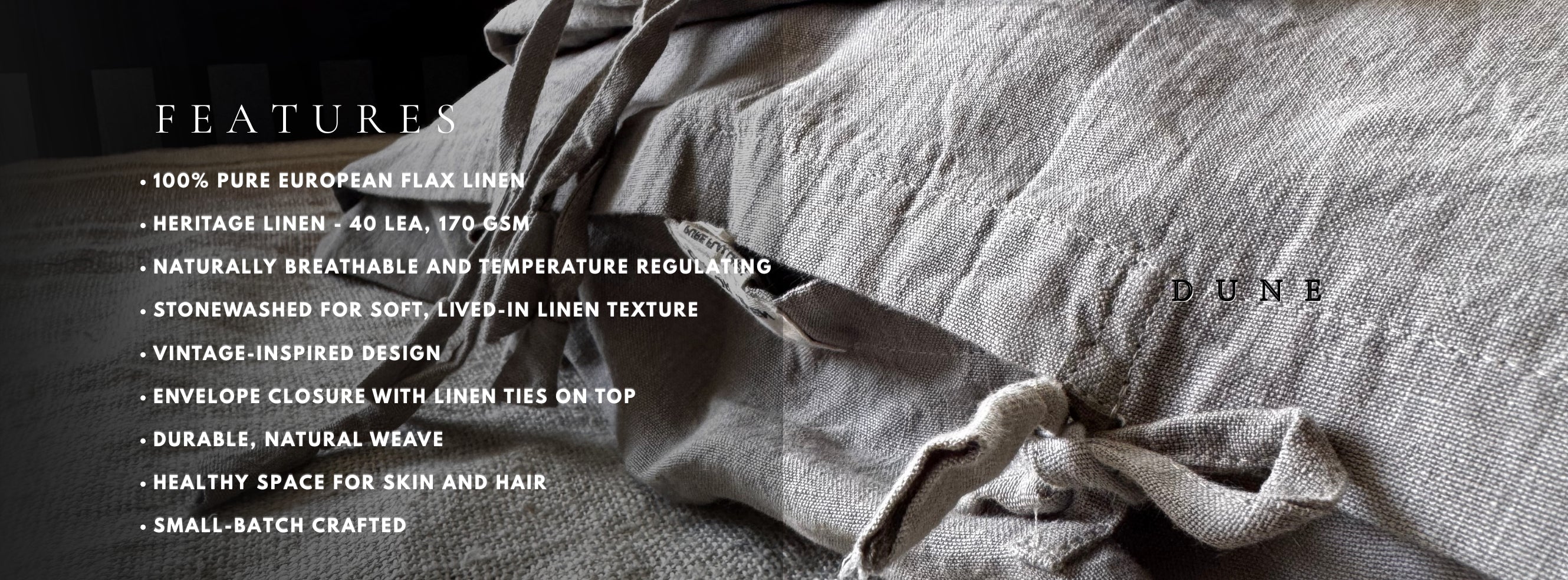 Dune Grey Pure Linen Pillowcases from LOVE FOR LINEN bring a calm, understated elegance to the bed. Woven from premium flax linen and finished for a relaxed handfeel, these pillowcases combine breathable comfort with thoughtful detailing inspired by old-world bedding.