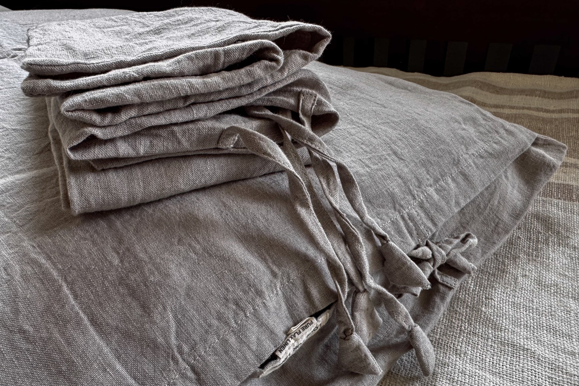 Vintage-inspired linen pillowcases in a soft, quiet grey