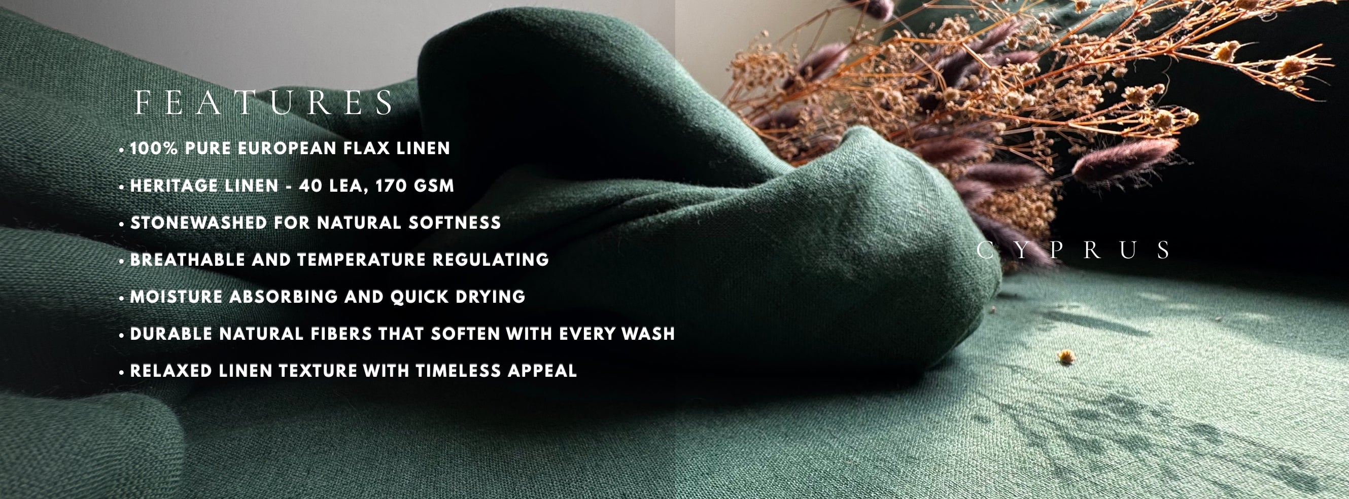 Bring the calm of nature indoors with the Cyprus Green Pure Linen Flat Sheet from LOVE FOR LINEN. Crafted from premium European flax linen, this breathable flat sheet is designed to provide exceptional comfort, durability, and relaxed elegance for everyday living.