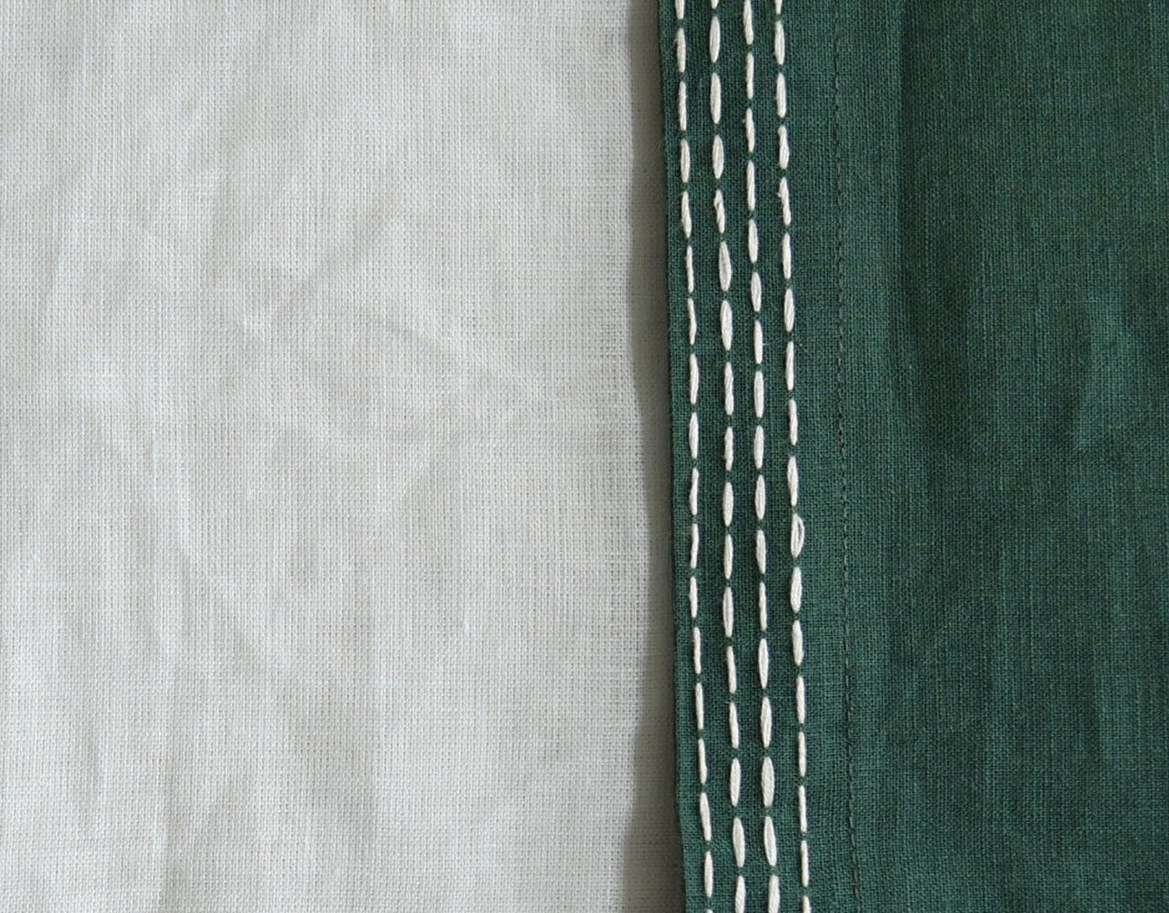 Upgrade your living and bedroom decor with our light weight Meadow Green throw made of pure flax linen, with kantha detailing on the borders. Whether draped over a sofa, folded neatly at the foot of a bed, or used as a make-shift picnic blanket, its versatile nature makes it a perfect addition to any home.